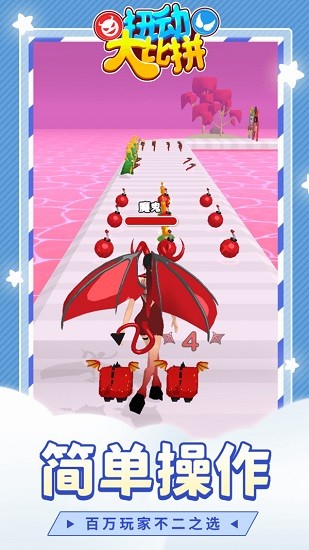 扭动大比拼采用精美的3d游戏画质加上趣味十足的跑酷元素带来不一样的游戏体验,丰富的关卡以及不同的游戏场景还有各种道具以及华丽的特效等等,随时随地都可以轻松加入适合打发无聊的时间。喜欢的玩家赶紧来下载加入吧!