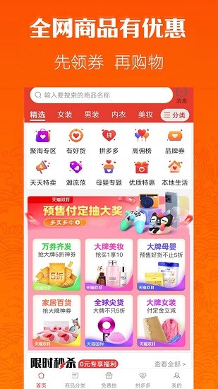 2、全网搜索,想找什么用关键词就能搜到,而且匹配度是很高的,这里的优惠券是真的挺多。