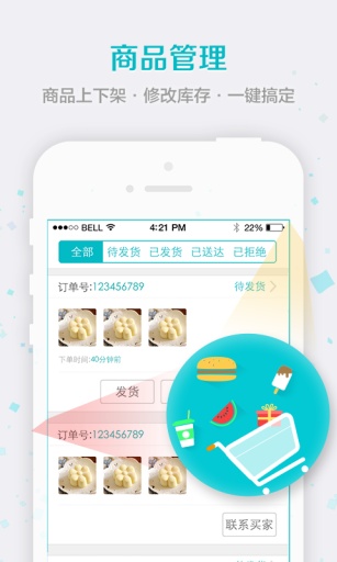 4、店铺管理:掌上店铺,去哪儿都可以轻松管理;商品库存实时同步