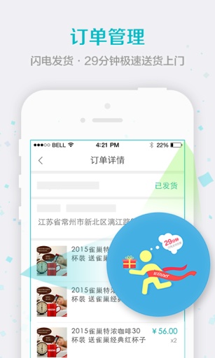 2、订单管理:闪电发货,29分钟极速送货上门;