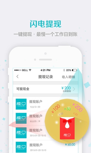 5、随时提现:一键提现,最慢一个工作日到账,注意是最慢哦