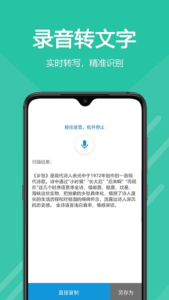 利用短语音识别技术,将短语音转换为文字,方便您复制与保存。