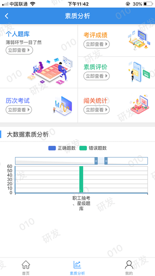我要闯关:闯关模块将个人总题库纳入到闯关系统中,以一种游戏和激励的手段,引导职工学习。