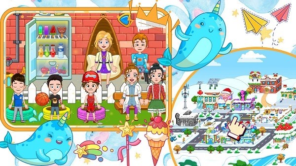 享受孩子们的迷你生活欢乐城镇游戏,您可以在一个地方玩和创建自己的冒险游戏故事,其中包含100多个公主城堡新世界角色、地点等!