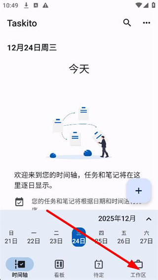 1、打开Taskito,点击底部导航栏的工作区图标。