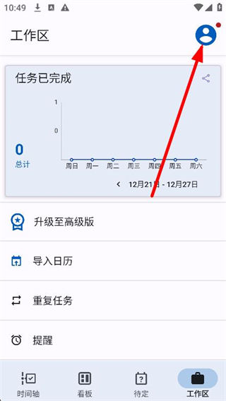1、打开Taskito,点击底部导航栏最右侧的工作区。