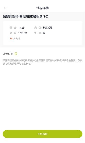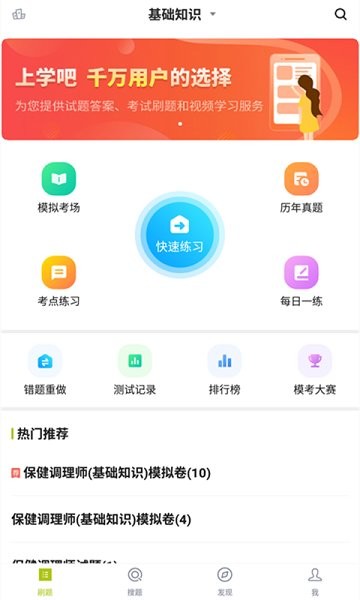 保健调理师APP有模拟考场、历年真题练习、快速练习、考点练习、做题记录等多种学习与做题模式、丰富多样化的陪你一起考保健调理师考试。