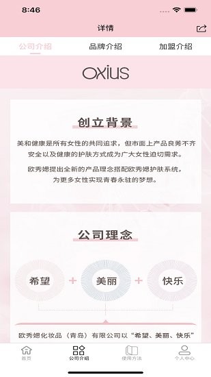 欧秀媤化妆品APP,是一个提供给我们品牌的顾客、加盟店、代理商使用的效率工具。