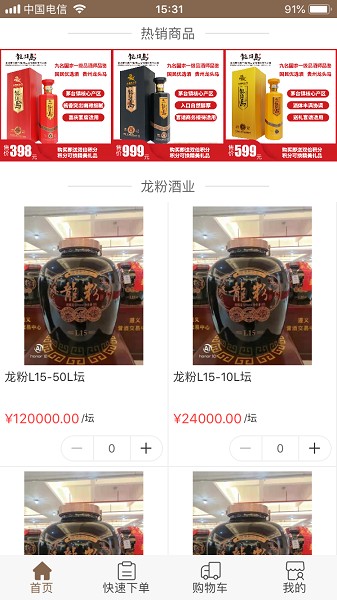 更清晰的购物车,你不仅可以先将酒水加入购物车下单还能赠送