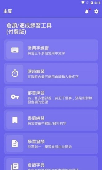 简约设计的界面容易使用,练习时无需连接网络。仓颉速成练习工具app内亦有提示系统,能够让协助各位从错误中学习。