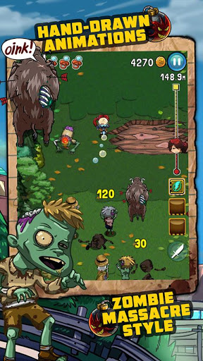 左右移动奔跑中的角色,瞄准背后不断追上来的僵尸,背后的小孩负责持枪射击;
