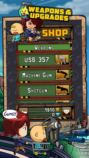 游戏分为手指触屏和重力感应两种操作,选择适合你的操作习惯,首次进入游戏可直接进入商店购买武器;
