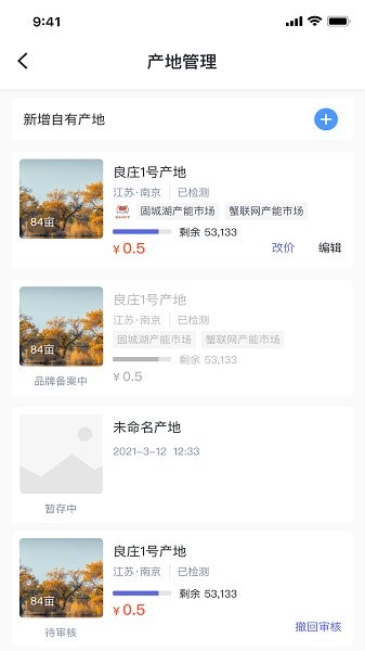【养殖户入住】:螃蟹养殖户注册登录App,可进行认证产地等操作。