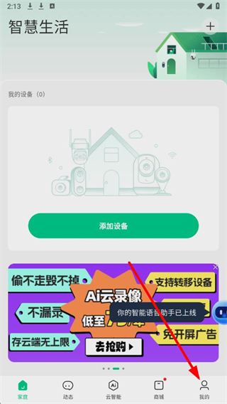 1、在360智慧生活首页界面,点击底部我的选项,进入个人页面。