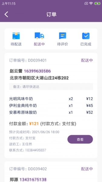 2.专业的报表,指尖轻轻一点,奶站订单量、品种、送奶员、收益一目了然