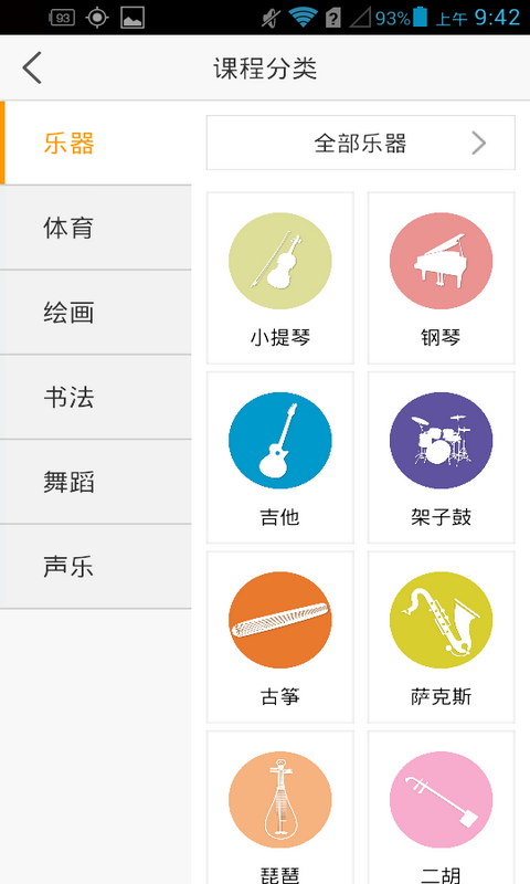 应用中有多种艺术类型课程供学生选择,根据自己需求选择课程。还可以一键搜索老师,选择最合适自己的老师进行指导教学。