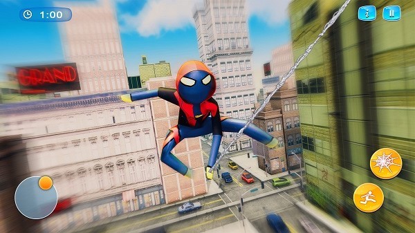2、一种新的实体3D引擎渲染,逼真的战斗场景。化身蜘蛛侠穿梭于不同的高楼大厦。