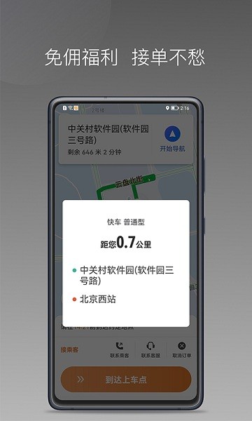 1、接驾高效:即时通讯,更快找到乘客位置。