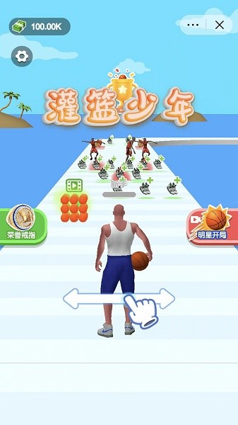 灌篮少年是一款休闲小游戏,一个怀揣篮球梦想的少年,为了梦想不断的前进一路困难重重,但也无法击退他的信心,凭借着敏捷的身法,过硬的基本功,旋转跳跃大灌篮,总有一天会站上最高点,教练我想打球!