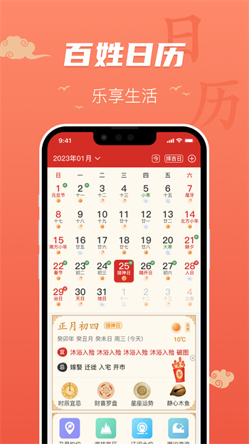 百姓万年历app是一款非常专业的日历软件,可以帮助用户更好的制定自己的计划,规划自己的日期,会有非常多的日期信息,通过各种日期的旦夕祸福还有相关内容,可以确定日程,还可以看到相关的天气预报,拥有更多功能。