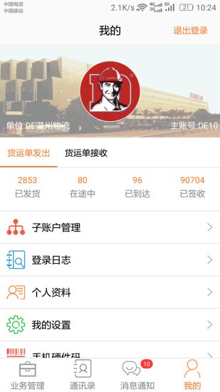 app分为三个端口:客户、de仓储、承运商。每个端口使用帐号、密码登陆,可设置主、子帐户不同岗位权限、上下游管理。