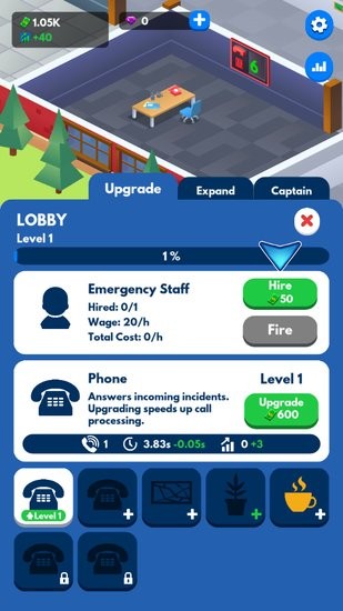 放置消防员大亨(Idle Firefighter)趣味的模拟经营玩法让人很上瘾,玩家在这个卡通世界中需要打造一支专业的消防团队,不仅要招聘消防员对他们进行训练,还要为他们装修房间、食堂、休息室,同时记得升级消防车和各种设备,大量钞票可以帮你更快升级。