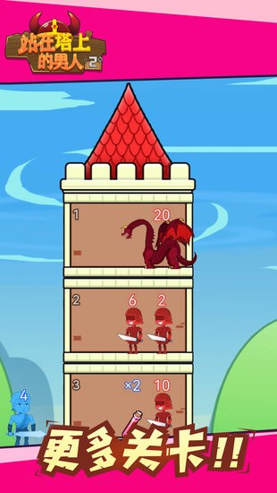 站在塔上的男人2延续了第一部的熟悉玩法,依旧是以闯关为主,玩家需要帮助勇士去克服更多困难,随着挑战难度的增加,城堡中会出现越来越多的恶龙和守卫,你必须打败这些敌人完成任务,每一层塔的布置不一样,要动脑筋才能通关。