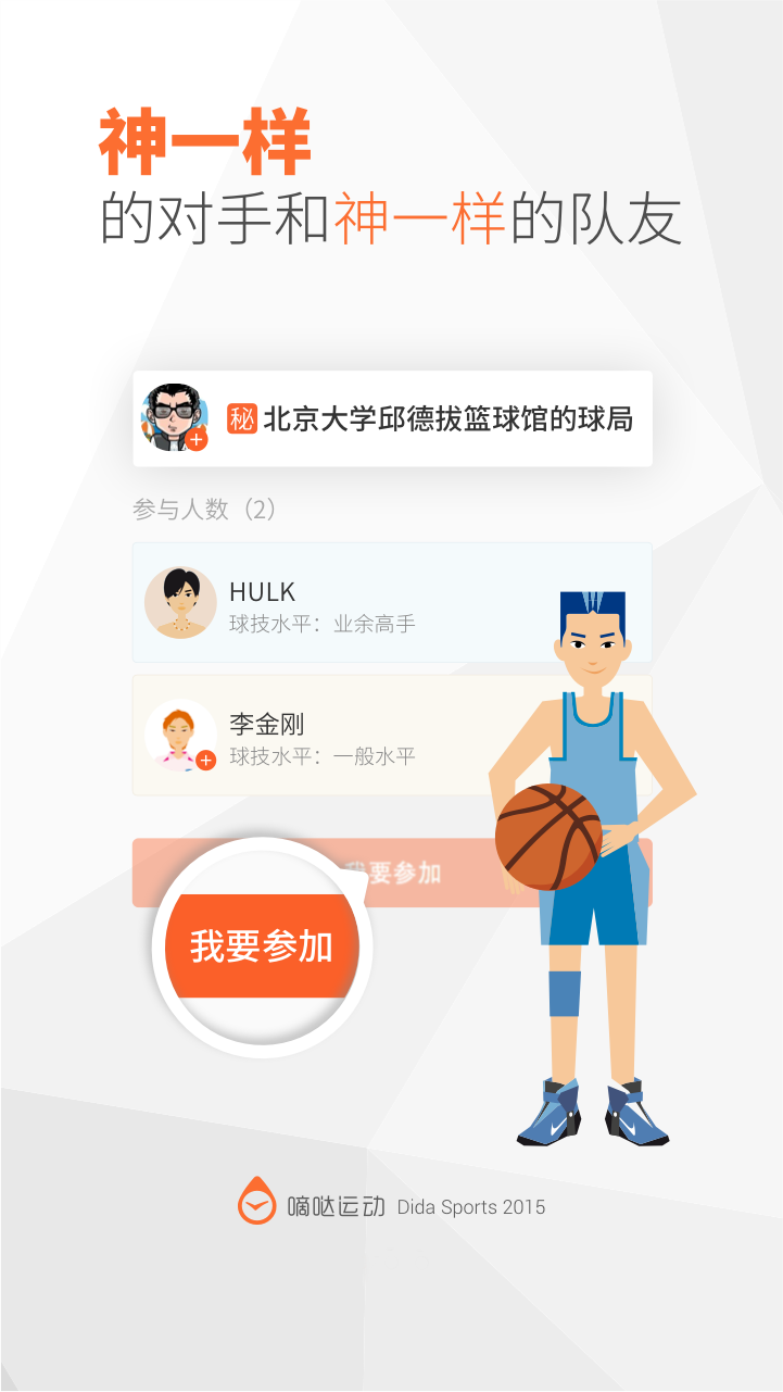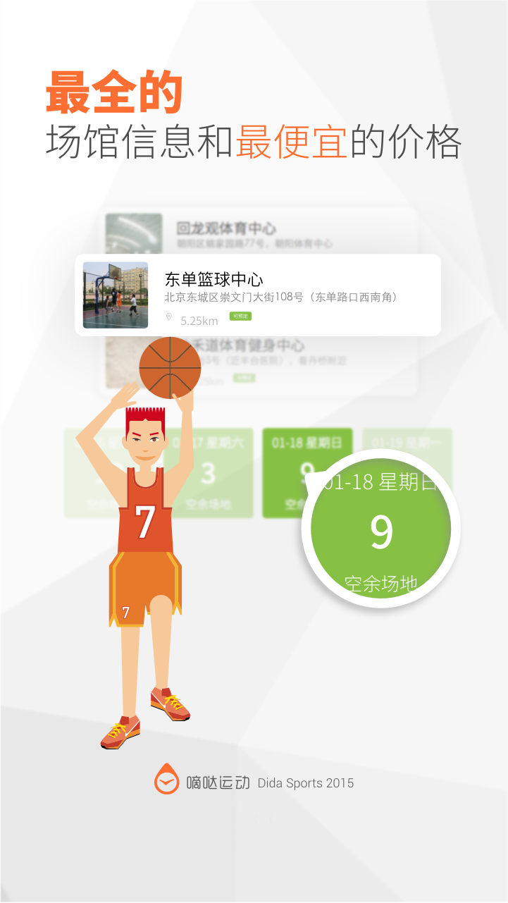 嘀哒运动是一款提供最全场馆信息和最便宜的价格的篮球约战实战软件,这里为你提供神一样的对手和神一样的队友的最新信息,预订场馆无需来回跑,轻轻一点,订场就是这么简单;