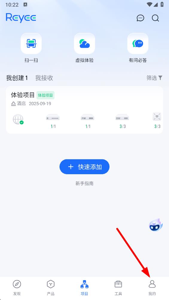 1、打开锐捷睿易app,点击底部导航栏最右侧的我的选项,进入个人相关界面。