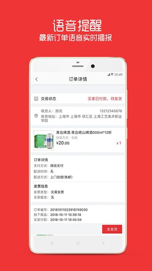 接收订单语音播报通知,从此不再错过任何一个订单;