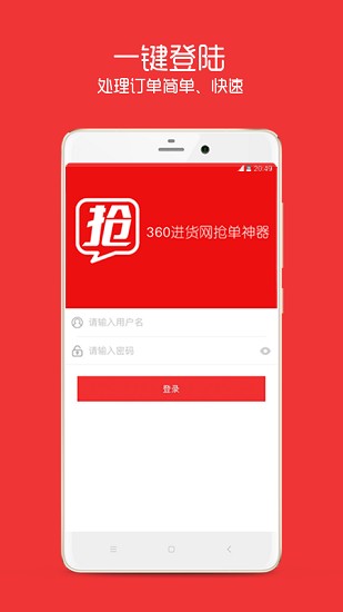 360进货网抢单app,为入驻商家倾情打造的抢单、接单神器,不仅能快速提高店铺商品销量,管理发货单,更能快速增加店铺营业额.商家指派订单给附近网点发货,网点可抢单/接收店铺指派的订单,省去不必要的人工成本!(仅供入驻进货网商家使用)