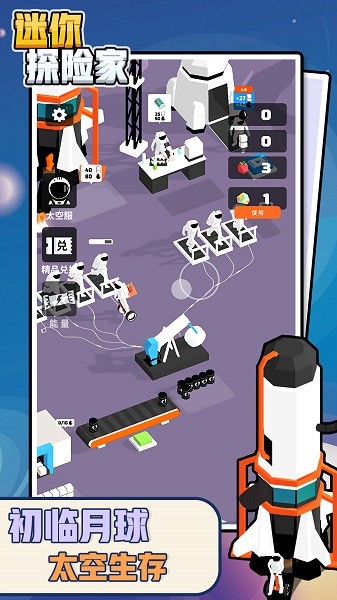 迷你探险家是一款非常有趣的以点击操作为核心的休闲模拟经营游戏。游戏中玩家将在月球上收集石油,建造工厂并探索整个宇宙!通过自己的努力能够成功的登上月球,成为一名专业的宇航员,能够体会到自己的不容易,收集更多资源与材料建立自己的月球基地,让你的经营活动更具有地域性,感受多种挑战精彩与独特魅力,畅享无限惊喜。