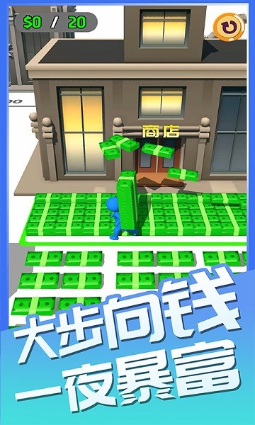 行至道路的尽头,并尝试沿途收集尽可能多的钞票。收集到的金钱越多,就能获得越精致的装束打扮。