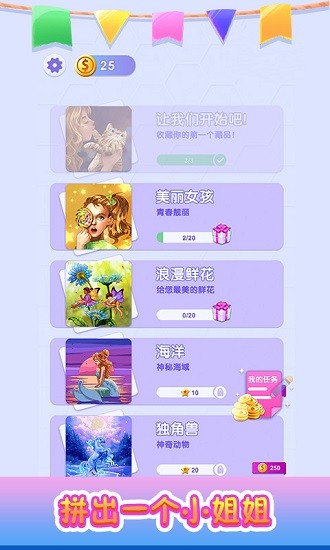 作品涵盖人物、风景、动物、星座、世界等多种主题,每完成一副作品都有相应的金币奖励呦。