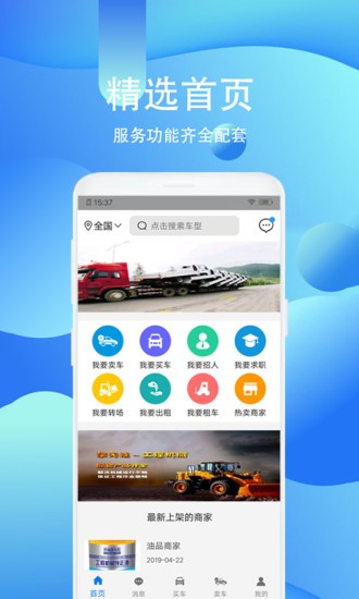 擎天柱机械app是非常好用的一款工程机械用车平台,在这里用户们能够找到超多的与工程车相关的功能,卖车、买车、招人、求职、租赁、出租等等等等全都有,让用户们快速的找到自己想要的功能进行使用,帮助用户们快速的将需求解决,还有超多的相关商品能够直接购买和相关资讯随意查看,超级的好用。