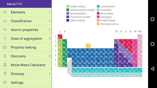 merck pte最新版让用户学习化学更加的方便,通过软件可以快速的对元素周期表上面的元素进行学习,许多的化学知识都可以在软件之中学习,帮助用户可以对化学有更深刻的了解。