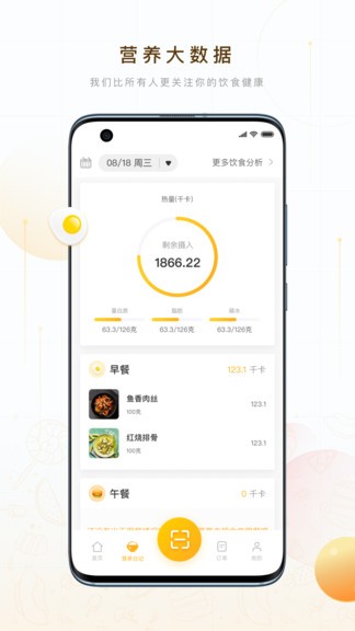 2、每一餐都能分析出相应的热量、蛋白质、脂肪、碳水等数据。