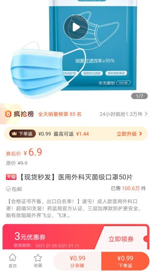 2、新人零元购:新用户下载可免费领取商品,先到先得,有现金红包;