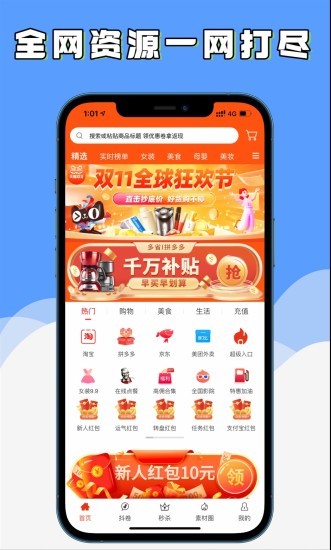 新人立享0元购,领取大额优惠券,返利购物不仅不花钱,还包邮到家,海量0元商品任你挑选。