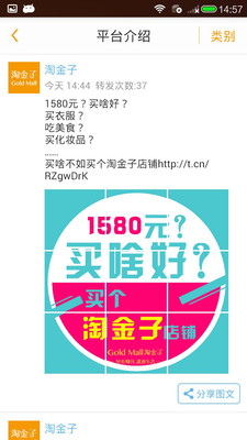 6000万微商的首选!手机开店必备,没有货源也能开店! 海量精选的分销商品,超高的利润空间。 公司介绍: 淘金子,国内领先的“三省合一”创业社交电商平台,为店主、消费者及供货商三个向度提供高品质“省心、省钱、省力”服务的创业社交电商平台,。淘金子隶属于杭州万曲品牌管理有限公司。淘金子项目成立于电商之都——杭州,总部位于白马湖湖畔的生态创意城,成立之初即获得著名投资人蔡文胜先生及FORGAME集团董事长汪东风先生的联合投资。淘金子商城是淘金子买家版,淘金子掌柜是淘金子卖家版。