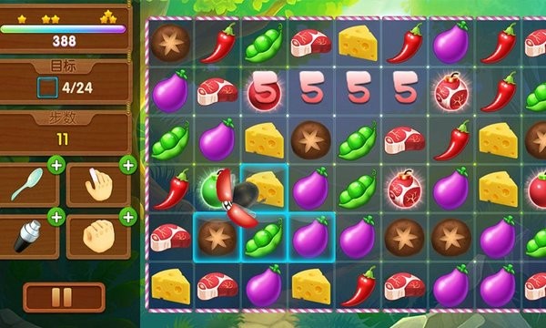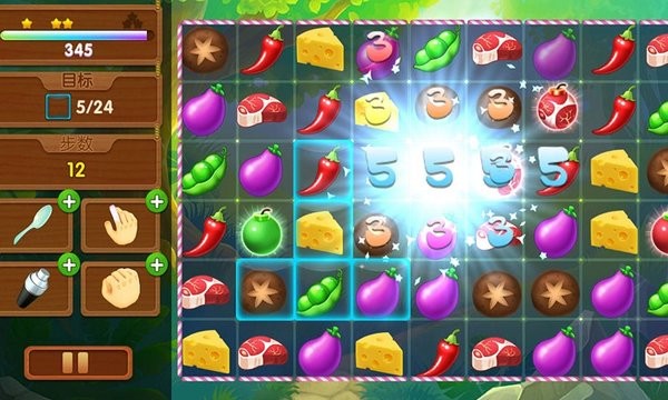 玩法多样,目标消除、限时得分、魔法道具等等,让游戏更有趣!精美蔬菜美食界面,让你胃口大开!