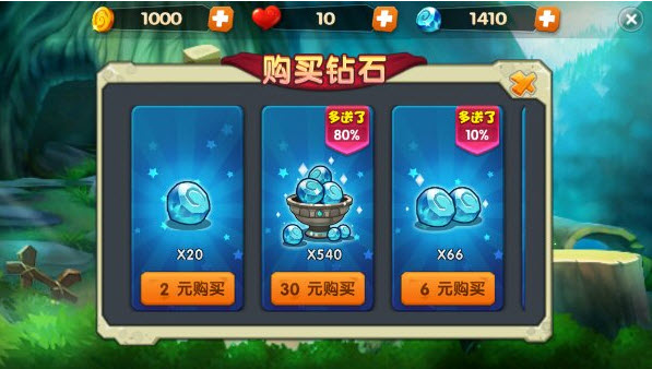 进入游戏,直接选金币和钻石的充值页面,当弹出需要支付,选择返回,即可内购成功!