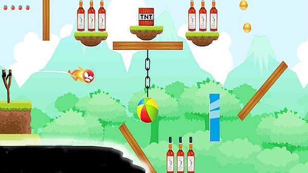 3、关卡中可以通过碰撞引爆炸药等道具的方式间接击飞瓶子