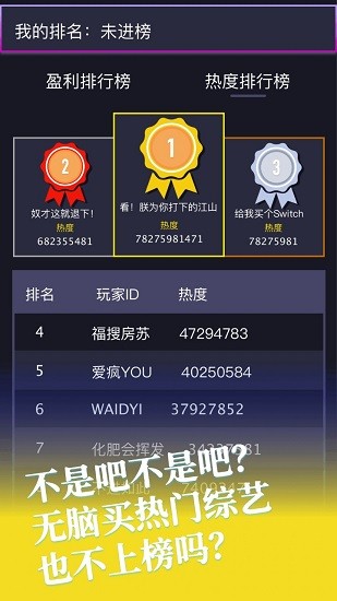 综艺大亨游戏是非常好玩的模拟经营类型的手游,在这里玩家们的要做的是在这里不断的创做出各种各样的让观众们喜欢的综艺节目来不断的赚取收视率和钱,使用赚到的钱就能够用来不断的升级自己的各种设备,摄影设备、直播技术等等,让你的节目能够让观众们更加的喜欢,超级的好玩。