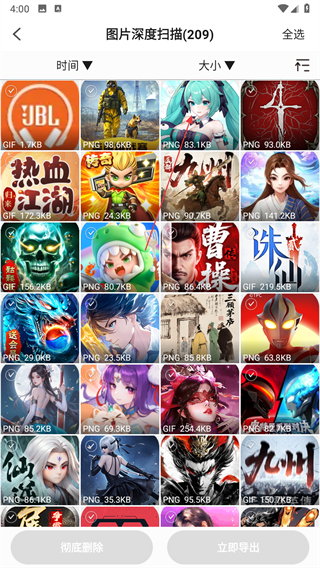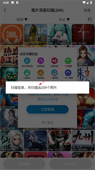 3、在图片深度扫描页面中,点击选择需要导出的图片。
