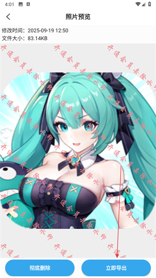 4、点击选中的图片进入照片预览页面,点击立即导出按钮。