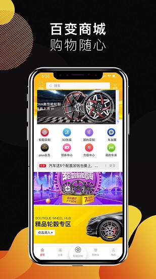 有车的用户可以在这个平台上面购买非常多的优质汽车配件,还能进行个性化的轮毂定制;