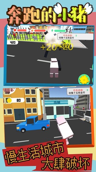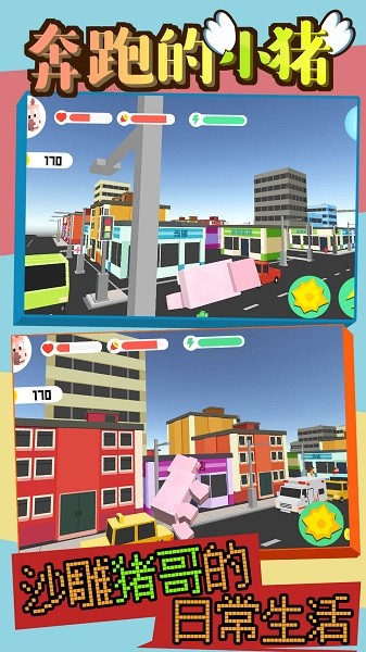 奔跑的小猪,尝试操控小猪,在一所繁华的大都市中生活,可以尝试在道路上狂奔跑酷收集金币,完成任务,也可以自由探索城市,肆意破坏,玩法开放,奇葩搞怪,感兴趣的玩家可以下载体验一下!