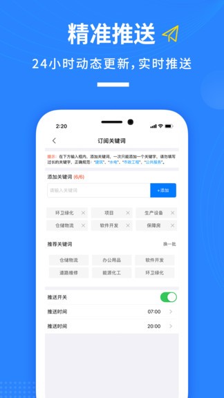 招标推送:全国招标信息随心订阅,随时随地即时推送,定制招标项目批量导出。