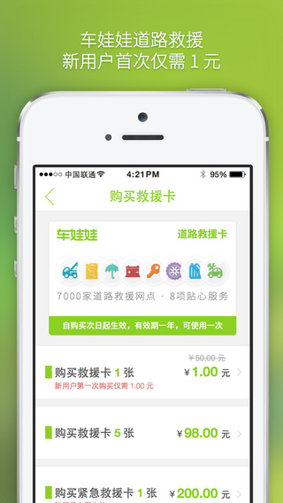 支持办理道路救援年卡,一年内可以任意呼叫救援服务;